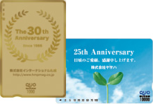 お店の開店記念、会社の周年記念に。キャンペーン、ご挨拶まわりなど、販促・ノベルティに、金箔・銀箔をはじめオリジナリティあふれるクオカードを作ってみませんか?